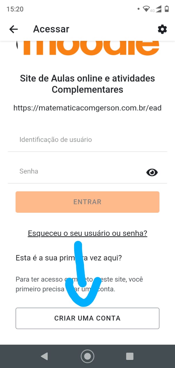 2) Após o Download abra o aplicativo Moodle e digite no campo site o endereço: matematicacomgerson.com.br/ead